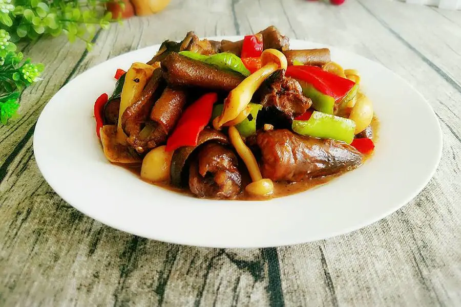 青椒、蘑菇、红椒、葱、姜、鳝鱼、大蒜