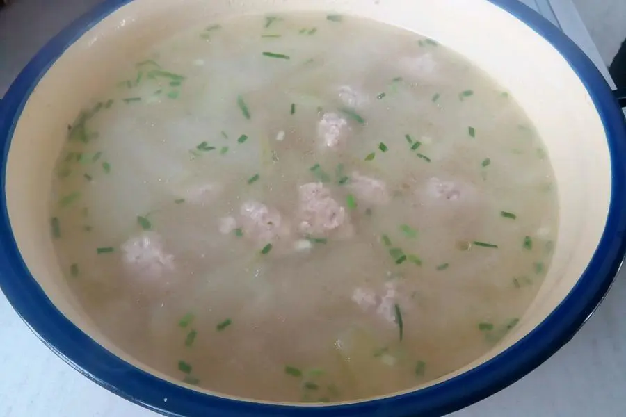 鸡蛋、冬瓜、玉米淀粉、肉馅、海米、香菜末、盐、香油、花椒粉、葱碎