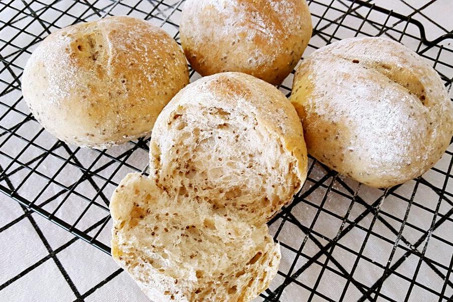 温水、酵母、高筋面粉、盐、玉米油、黑麦面粉、奇亚籽