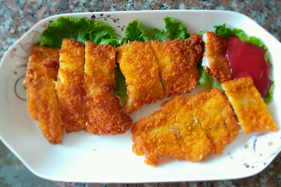 鸡蛋、草鱼、玉米淀粉、料酒、盐、食用油、胡椒粉、面包糠、葱姜