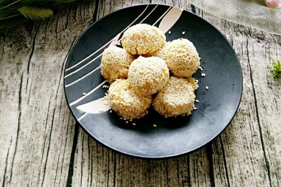 面粉、糯米粉、白芝麻、白糖、南瓜泥、花生油(炸制)