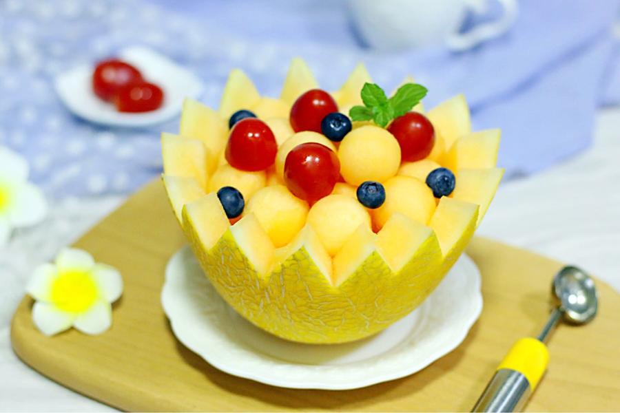 圣女果、蓝莓、哈密瓜、水果刀、挖球器