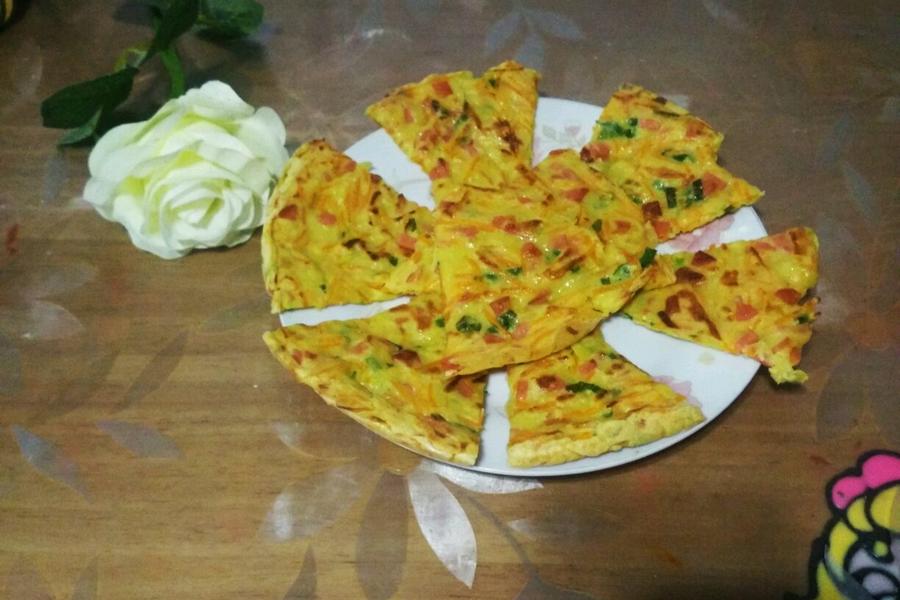 鸡蛋、胡萝卜、面粉、小葱、马可波罗火腿肠