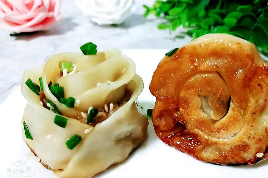 肉馅、葱花、熟白芝麻、饺皮、食用油、清水