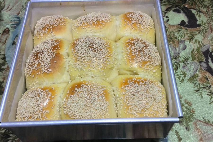 鸡蛋、牛奶、温水、酵母、中粉、高粉、黄油、盐、糖、鸡蛋(刷表面)、面包: