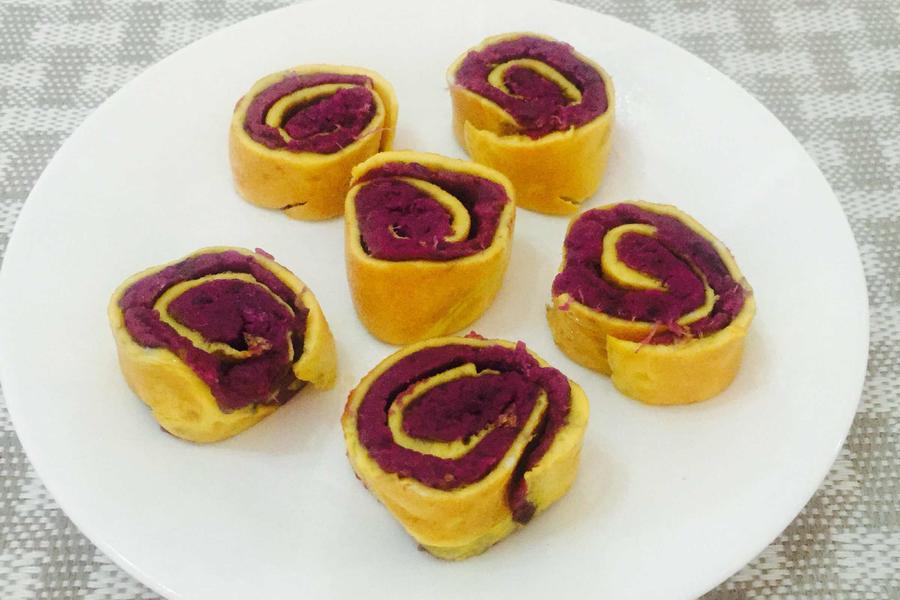 紫薯、糯米粉、白芝麻、纯牛奶、纯牛奶、玉米油、白糖、表面: