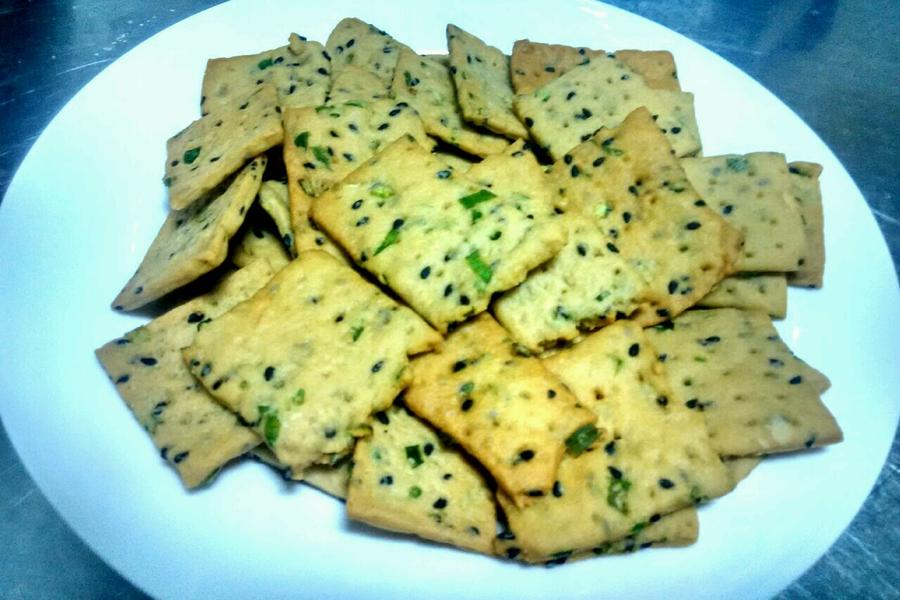 低筋面粉、小葱、盐、小苏打、酵母粉、香油、黑芝麻
