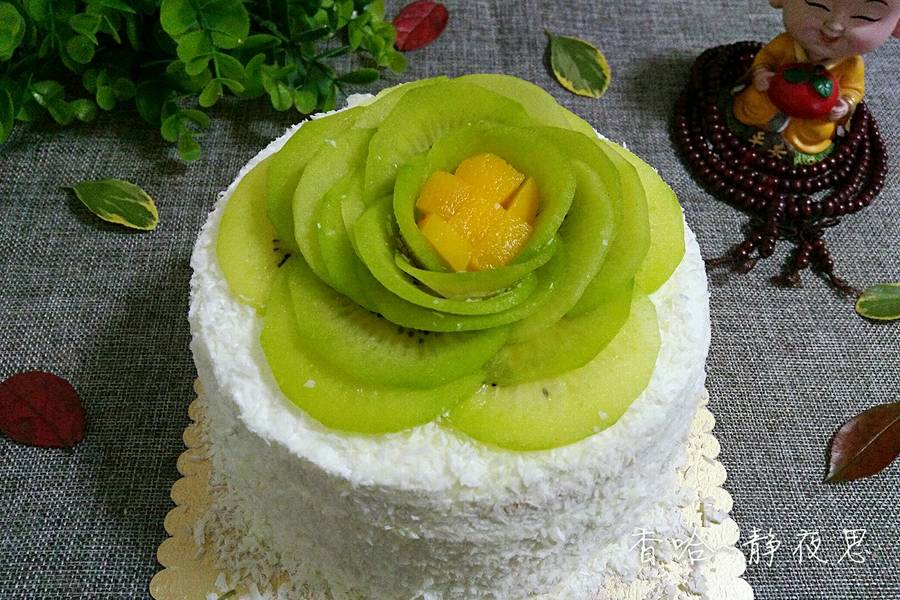 猕猴桃、芒果、银色糖珠、八寸戚风蛋糕、白色巧克力、白糖、淡奶油、星星糖珠