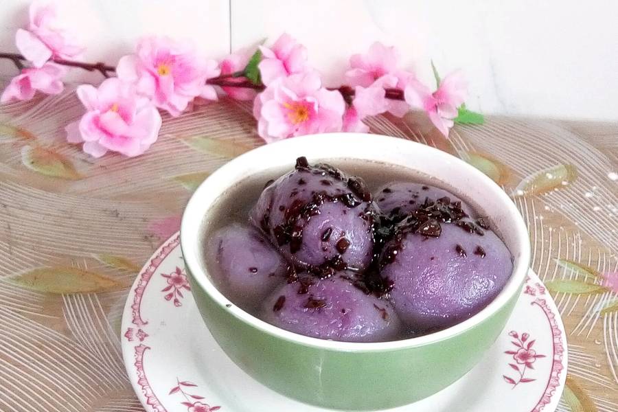 温水、豆沙馅、糯米粉、白糖、紫薯泥