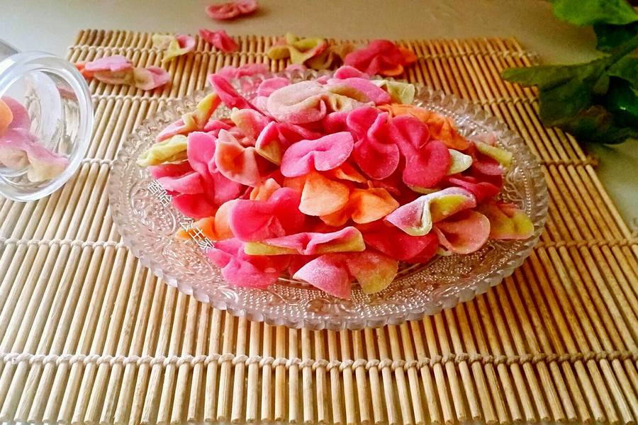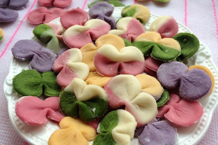 高筋面粉、菠菜汁、红萝卜汁、南瓜泥、红色火龙果汁