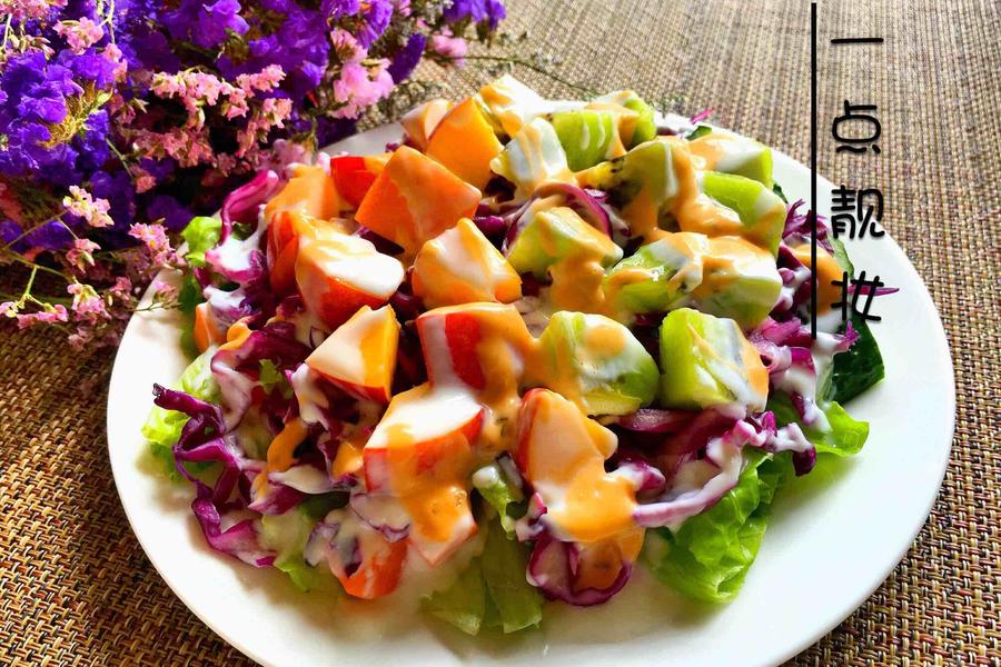 玉米粒、紫甘蓝、秋葵、苦苣、樱桃番茄、丘比沙拉酱、小乳瓜
