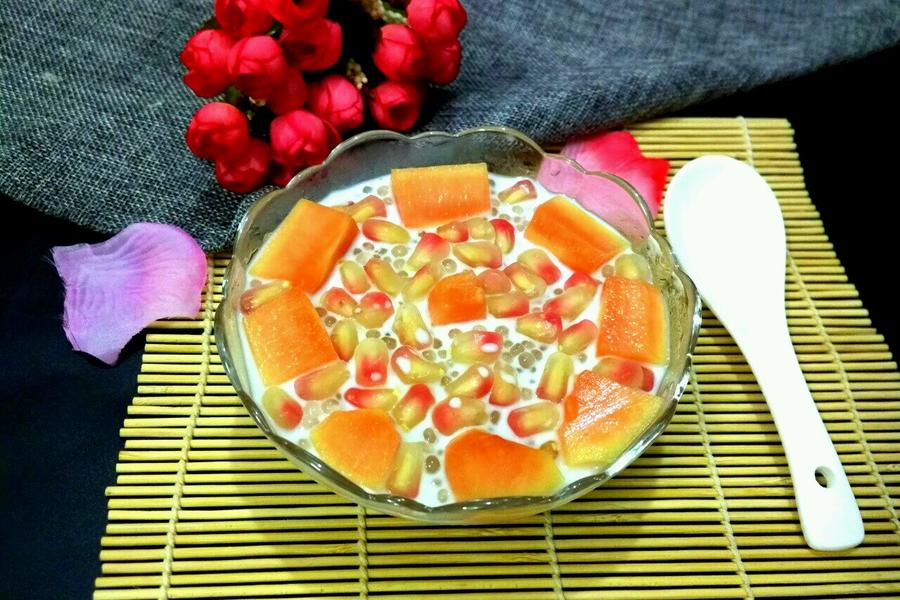 西米、大芒果、袋装牛奶、炼乳、砂糖