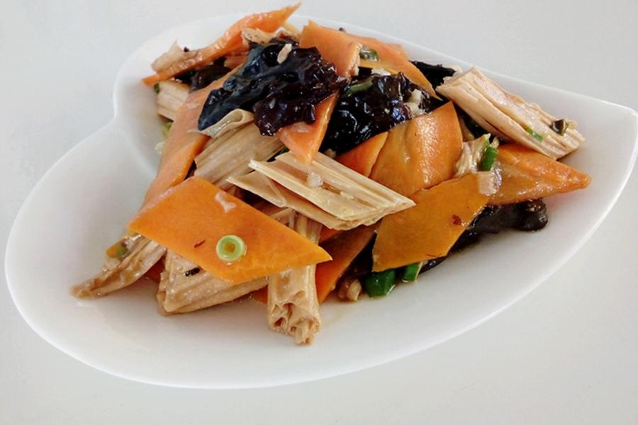 青椒、水、腐竹、木耳、盐、生抽、花生油