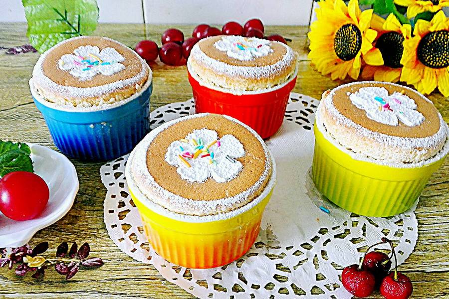鸡蛋、牛奶、低筋面粉、可可粉、彩色糖珠、玉米油、淡奶油、柠檬汁、红曲粉、细砂糖(蛋黄部分)、细砂糖(蛋白部分)、细砂糖(淡奶油部分)、装饰小插牌