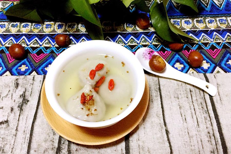 芋头、枸杞、糯米粉、芝麻糖馅、糖桂花