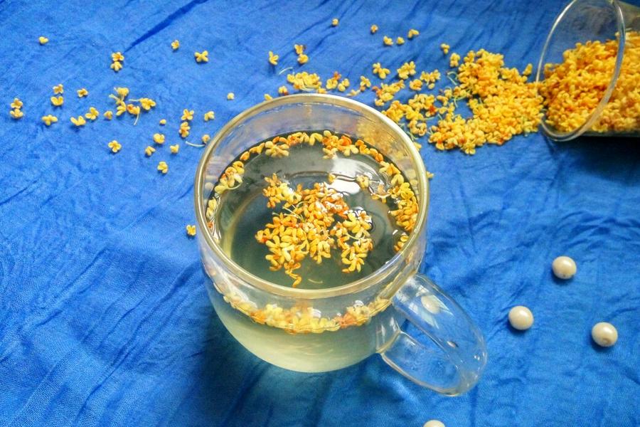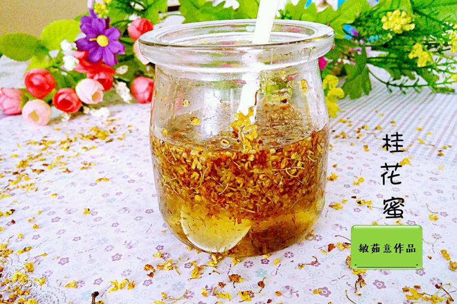 玻璃瓶、新鲜桂花、盐、蜂蜜