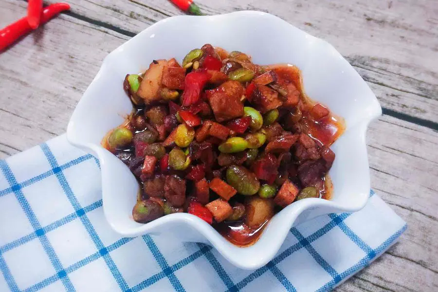毛豆、干辣椒、花椒、盐、八角、桂皮、香叶