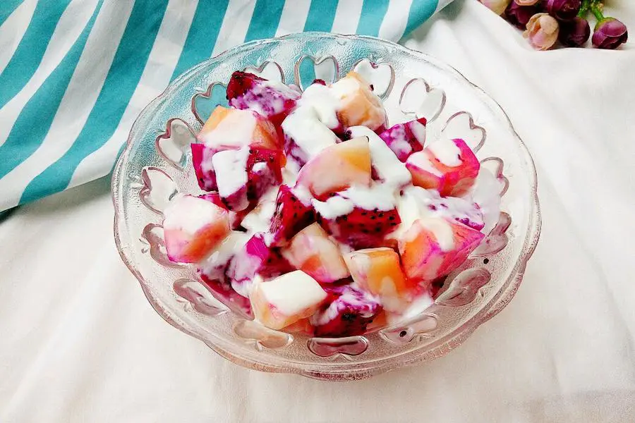 猕猴桃、芒果、酸奶、红心火龙果、白糖