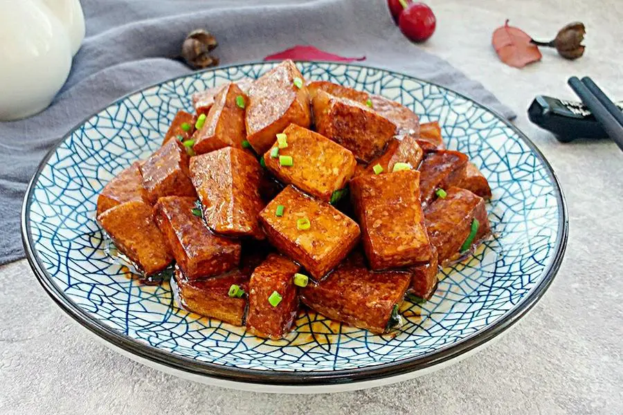 豆腐、小葱、盐、糖、老抽、清水、淀粉