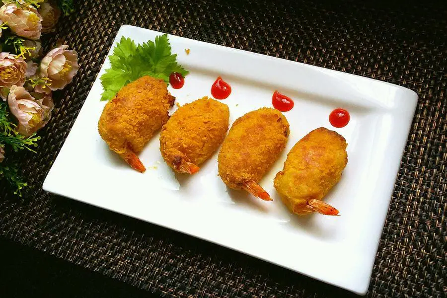 鸡蛋、香蕉、玉米淀粉、色拉油、面包糠、罐头樱桃(点缀)、薄荷叶(点缀)