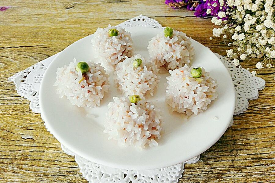 大米、蛋白、牛肉馅、青豌豆、虾仁、料酒、盐、胡椒粉、淀粉、白醋、香油或食用油
