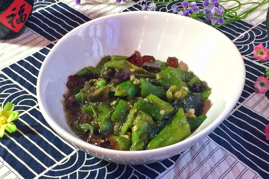 皮蛋、青椒、小米椒、姜、大蒜、食用油、生抽、香油