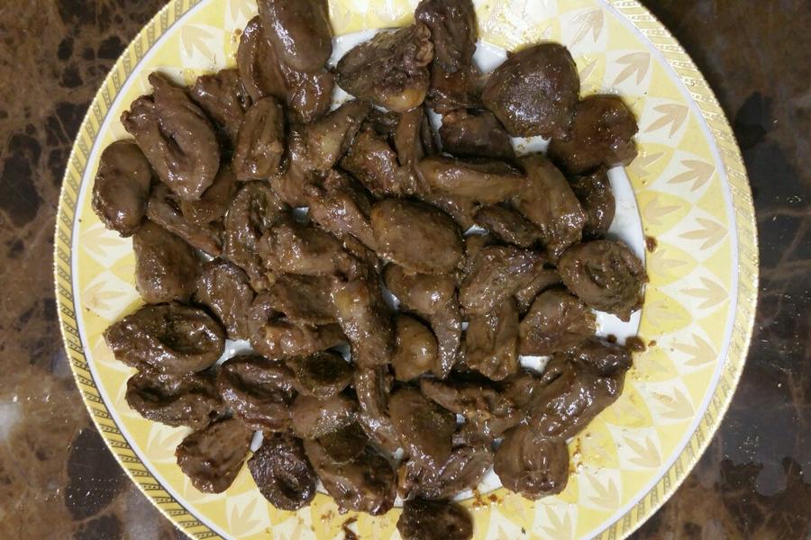 鸡心、姜、蒜、小葱、料酒、花椒、盐、八角、豆瓣酱、胡椒粉、耗油、瓶装辣椒油
