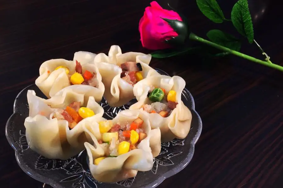 香菇、水饺皮、糯玉米粒、葱、里脊肉、生粉