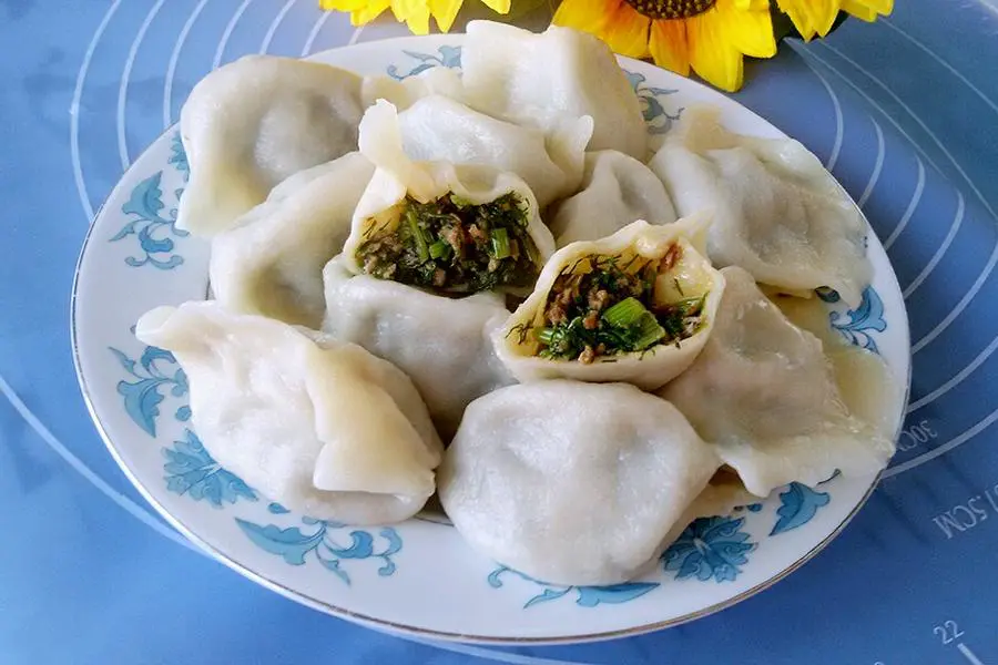 面粉、温水、姜末、牛肉馅、大葱、盐、香油、生抽酱油、调味料水