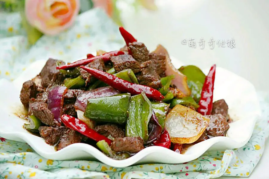 洋葱、青椒、生姜、干红辣椒、牛里脊肉、大蒜、花椒粒