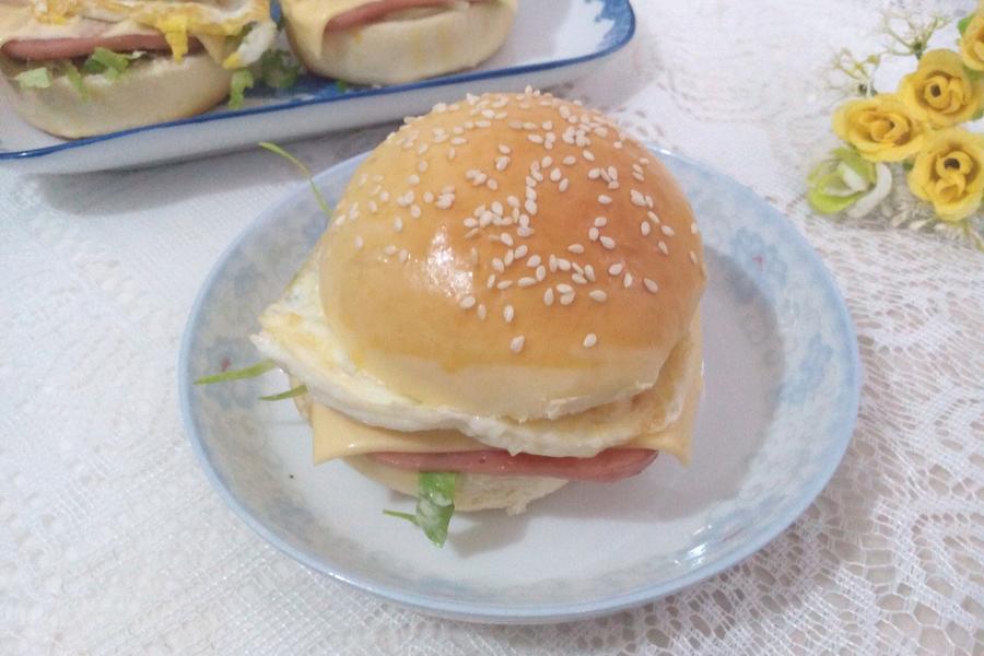 火腿、鸡蛋、生菜丝、汉堡胚、安佳芝士片
