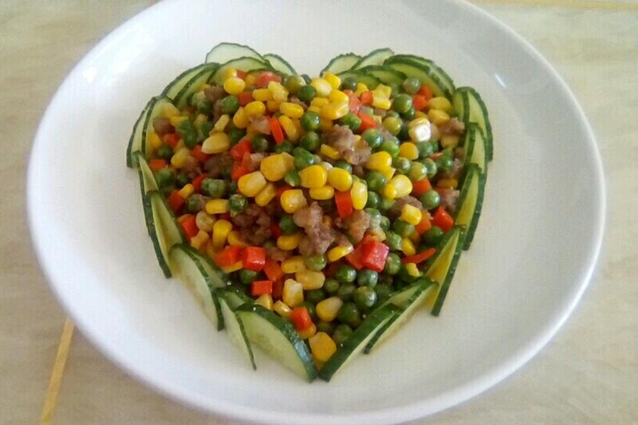 胡萝卜、黄瓜、火腿肠、玉米粒