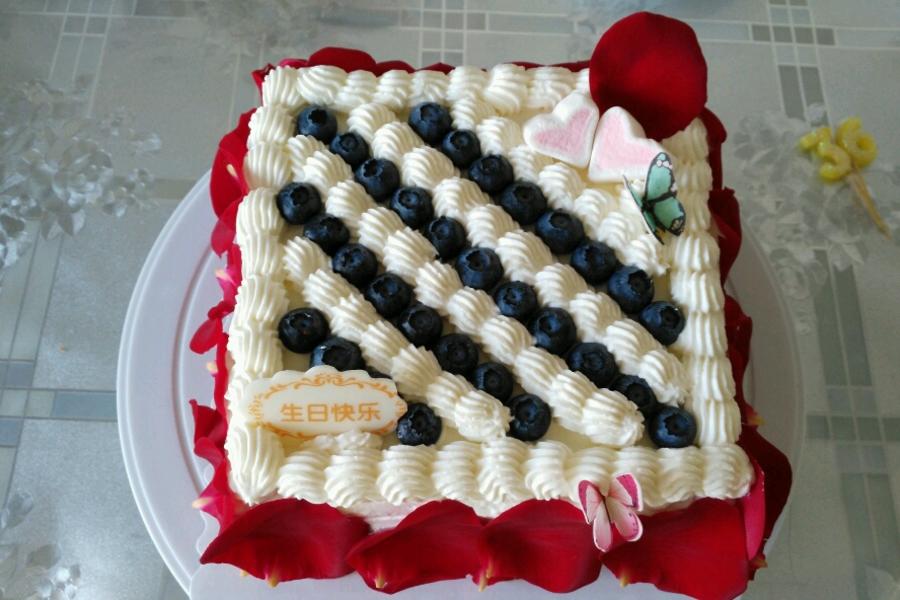 草莓、猕猴桃、芒果、蓝莓、红心火龙果、砂糖、淡奶油、6寸方形戚风蛋糕