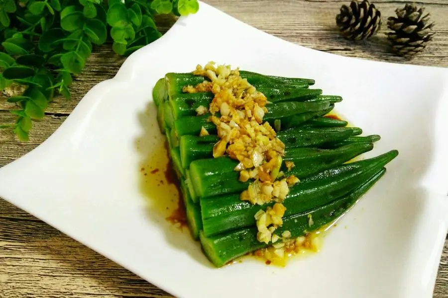 秋葵、盐、大蒜、生抽、油