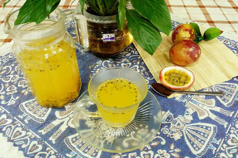 温水、百香果、蜂蜜