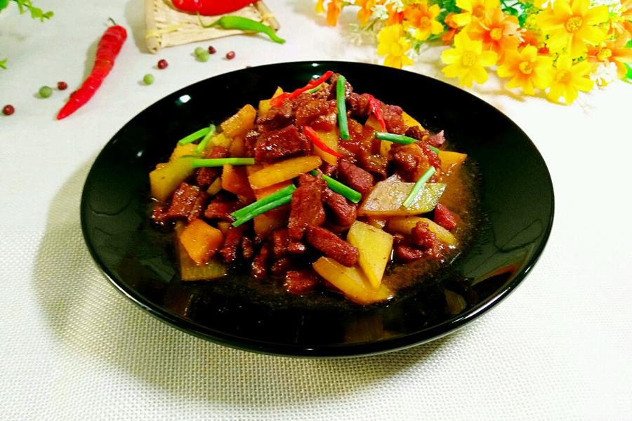 蒜苗、萝卜、青红尖椒、羊腿肉