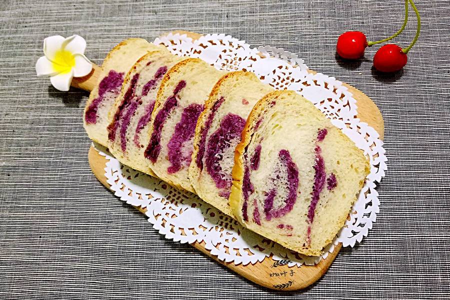 鸡蛋、牛奶、酵母、高筋面粉、红薯泥、黄油、盐、细沙糖