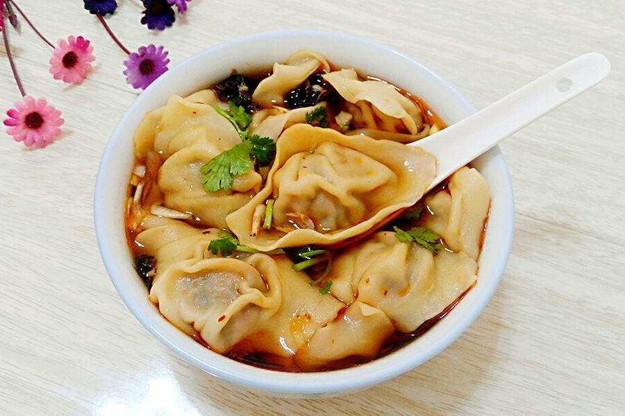 猪肉、紫菜、香菜、胡萝卜、面粉、温水、葱花、虾皮、泡发木耳、新鲜香菇、大葱、料酒、盐、盐、生抽、生抽、油、鸡精、鸡精、香油、陈醋、辣椒油、十三香、馄饨汤汁用料: