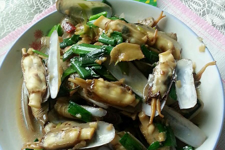 姜丝、蛏子、葱段