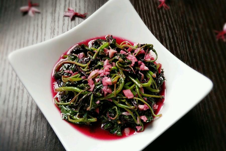 蒜瓣、红苋菜、盐、油