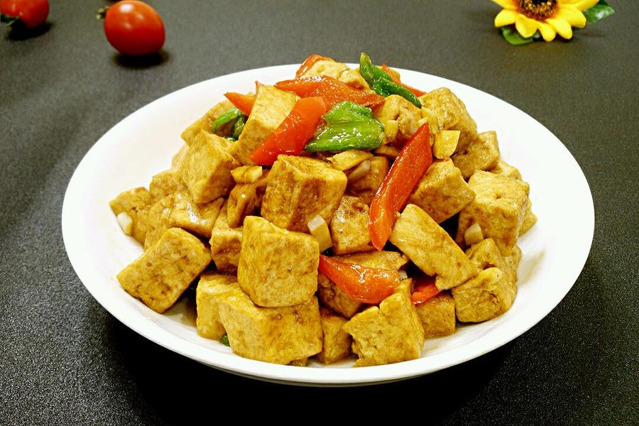 水、西芹、千叶豆腐、葱、蒜、蚝油、酱油、鸡精、红干辣椒丝