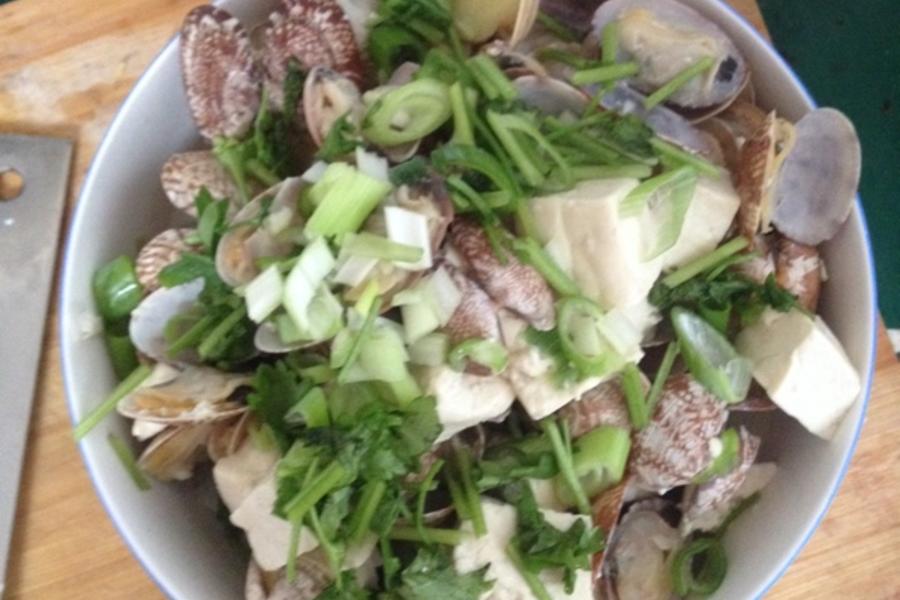 豆腐、花蛤、葱、姜