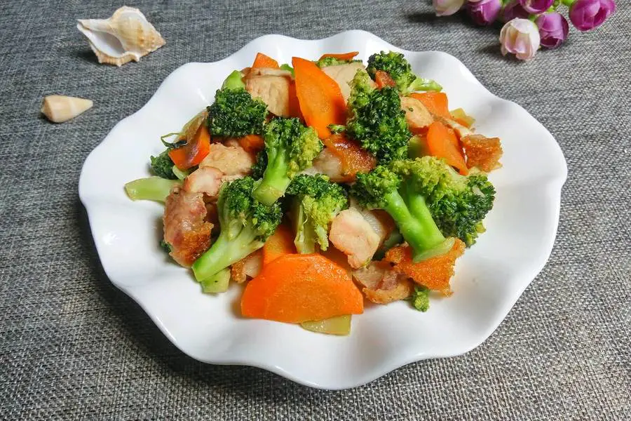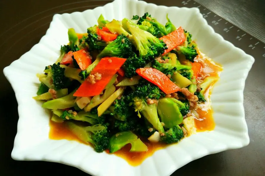 胡萝卜、西兰花、肉末、生姜、蒜头