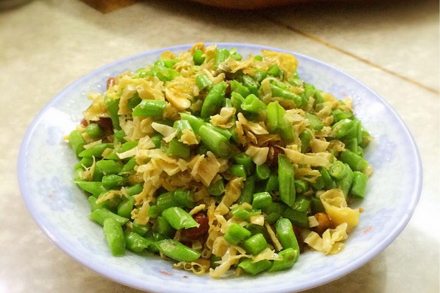 豆角、干辣椒、盐、糖、油、胡椒粉、蒜粒