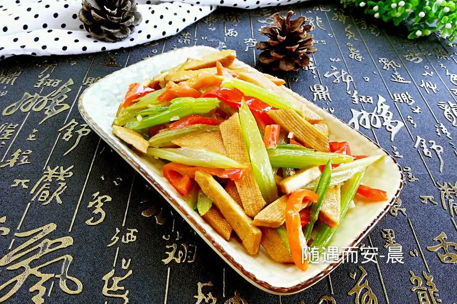 芹菜、红椒、豆干