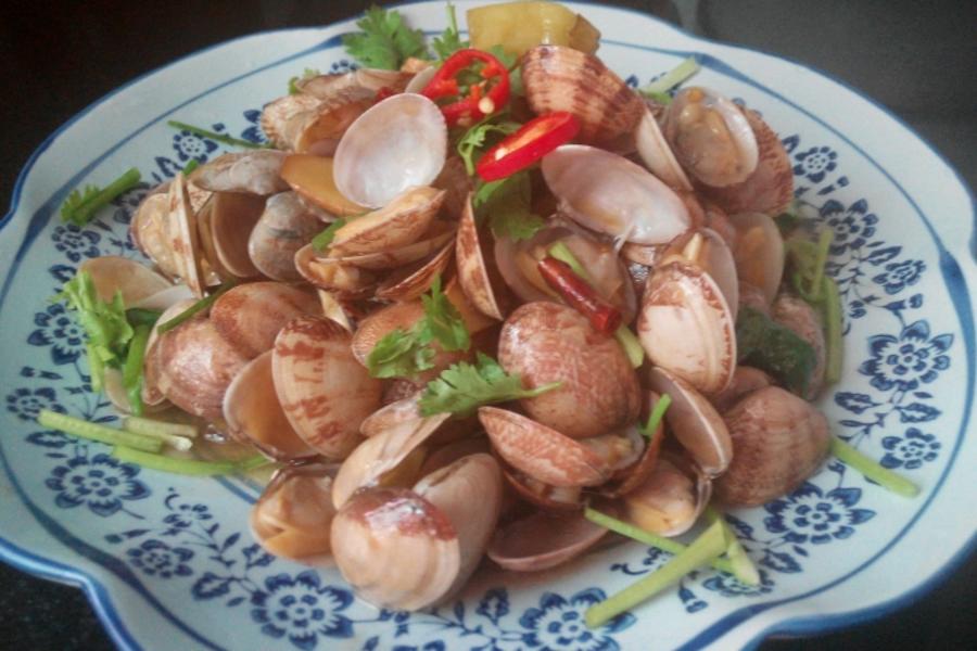 姜丝、花蛤、青红椒、蒜苗芹菜