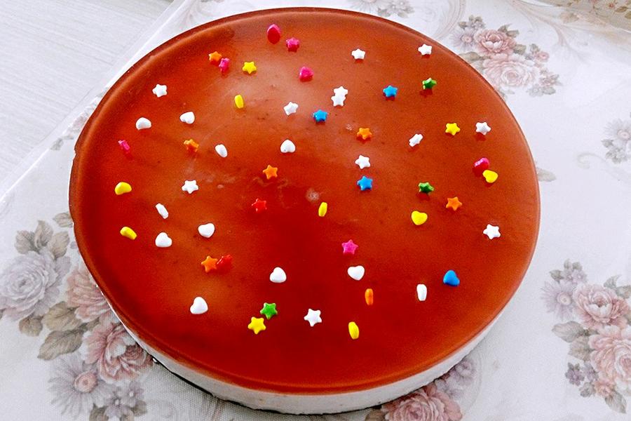 水、QQ糖、八寸戚风、老酸奶、奶油、糖、糖、蓝莓果酱、鱼胶片