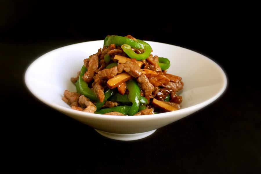 牛肉、青椒、泡椒、姜、蒜、蚝油、盐、生抽、胡椒粉、植物油、水淀粉、郫县豆瓣