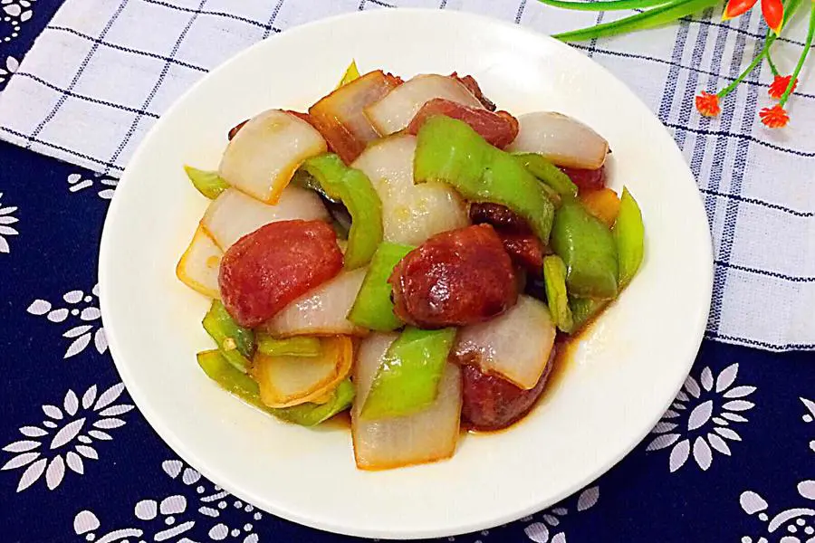 洋葱、青椒、生姜、清水、腊肠