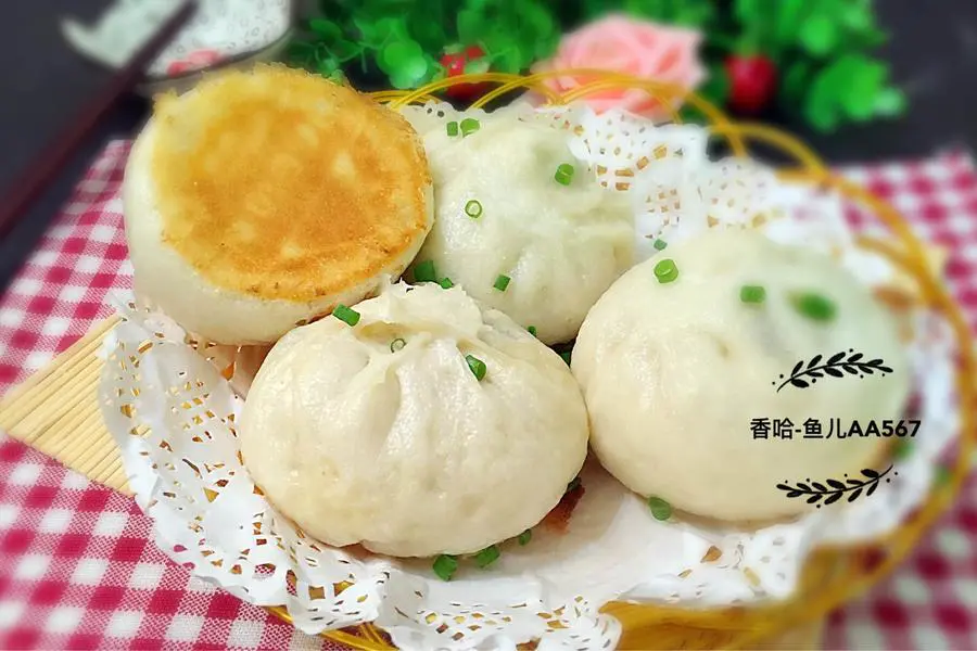 水(皮)、面粉(皮)、盐(皮)、酵母粉(皮)、盐(馅儿)、鸡蛋(皮)、猪肉末(馅儿)、酸菜(馅儿)、葱末(馅儿)、姜末(馅儿)、鸡精(馅儿)